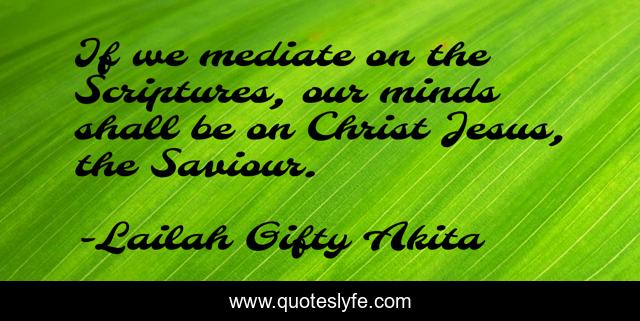 This page presents the quote "If we mediate on the Scriptures, our minds shall be on Christ Jesus, the Saviour.". Author of this quote is Lailah Gifty Akita. This quote is about jesus-christ, confidence, scriptures, positive, motivational, optimistic, inspiration,.