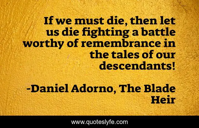 "Daniel Adorno, The Blade Heir Quotes." Quoteslyfe.com, 2025. Fri. 05 Dec. 2025. <https://www.quoteslyfe.com/quote/If-we-must-die-then-let-us-82950>.