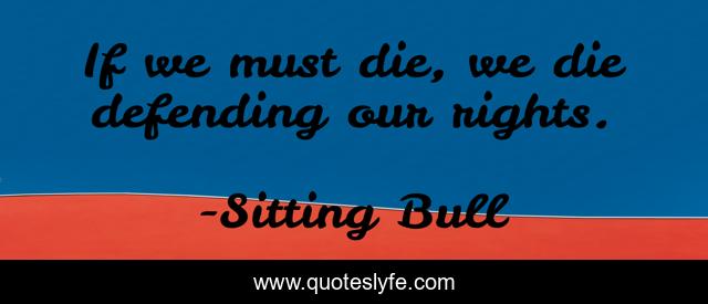 This page presents the quote "If we must die, we die defending our rights.". Author of this quote is Sitting Bull. This quote is about die, rights,.