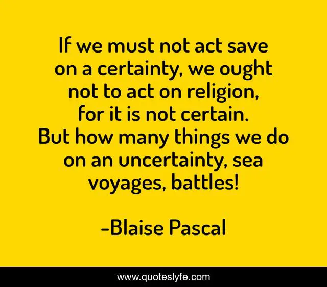 If we must not act save on a certainty, we ought not to act on religion, for it is not certain. But how many things we do on an uncertainty, sea voyages, battles!