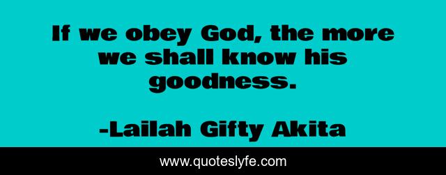 This page presents the quote "If we obey God, the more we shall know his goodness.". Author of this quote is Lailah Gifty Akita. This quote is about christian, obey-god, goodness,.