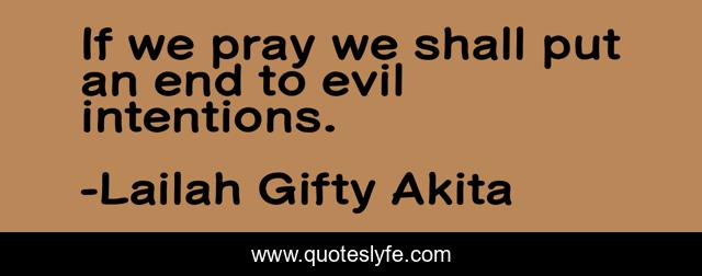 This page presents the quote "If we pray we shall put an end to evil intentions.". Author of this quote is Lailah Gifty Akita. This quote is about pray, intentions, wise-words, christian, evil,.