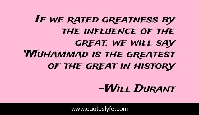 This page presents the quote "If we rated greatness by the influence of the great, we will say "Muhammad is the greatest of the great in history". Author of this quote is Will Durant. This quote is about islamic, muhammad, islam, muhammed, muhammad-pbuh,.