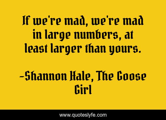 "Shannon Hale, The Goose Girl Quotes." Quoteslyfe.com, 2025. Fri. 05 Dec. 2025. <https://www.quoteslyfe.com/quote/If-we-re-mad-we-re-mad-40344>.