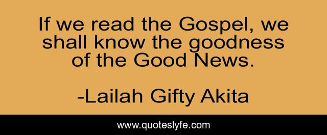 This page presents the quote "If we read the Gospel, we shall know the goodness of the Good News.". Author of this quote is Lailah Gifty Akita. This quote is about inspiring, christian, good-news, goodness, self-help, gospel, grace,.