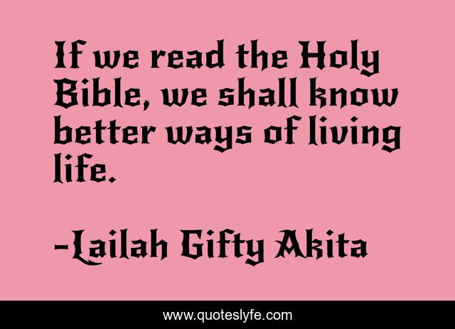This page presents the quote "If we read the Holy Bible, we shall know better ways of living life.". Author of this quote is Lailah Gifty Akita. This quote is about read, holy-bible, living-life, inspirational, enthusiasm,.