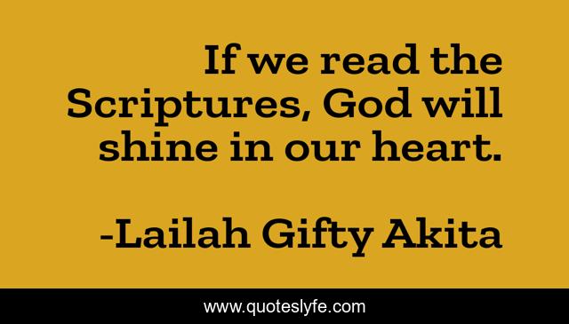 This page presents the quote "If we read the Scriptures, God will shine in our heart.". Author of this quote is Lailah Gifty Akita. This quote is about scriptures, god, inspirational, enthusiasm, reading, happiness,.