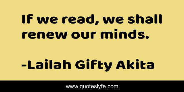"Lailah Gifty Akita Quotes." Quoteslyfe.com, 2025. Mon. 08 Dec. 2025. <https://www.quoteslyfe.com/quote/If-we-read-we-shall-renew-our-29292>.