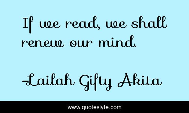 This page presents the quote "If we read, we shall renew our mind.". Author of this quote is Lailah Gifty Akita. This quote is about read, motivation, books, renewed-mind,.