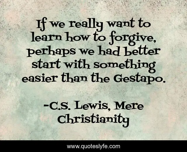 This page presents the quote "If we really want to learn how to forgive, perhaps we had better start with something easier than the Gestapo.". Author of this quote is C.S. Lewis, Mere Christianity. .