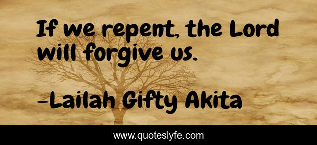 This page presents the quote "If we repent, the Lord will forgive us.". Author of this quote is Lailah Gifty Akita. This quote is about forgiveness, sins, repent,.