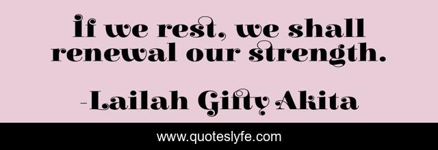 This page presents the quote "If we rest, we shall renewal our strength.". Author of this quote is Lailah Gifty Akita. This quote is about strength, rest, renewal,.