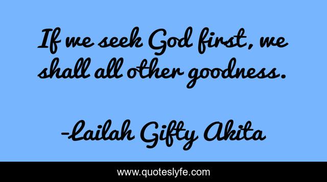 This page presents the quote "If we seek God first, we shall all other goodness.". Author of this quote is Lailah Gifty Akita. This quote is about christian, god, christianity, religion, goodness, seek,.