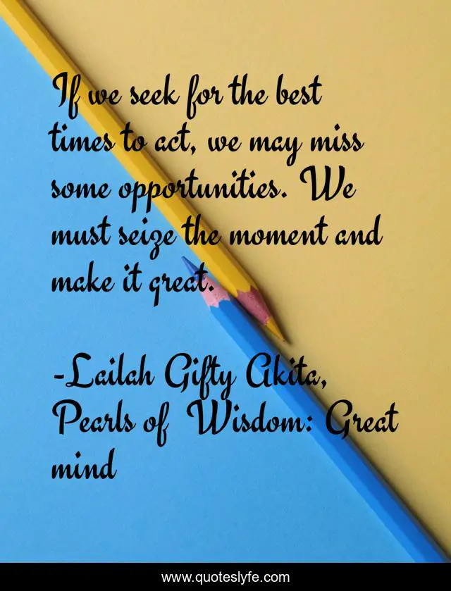 If we seek for the best times to act, we may miss some opportunities. We must seize the moment and make it great.