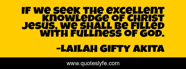 This page presents the quote "If we seek the excellent knowledge of Christ Jesus, we shall be filled with fullness of God.". Author of this quote is Lailah Gifty Akita. This quote is about christian, knowledge, god, theology, inspirational, enthusiasm, christianity,.
