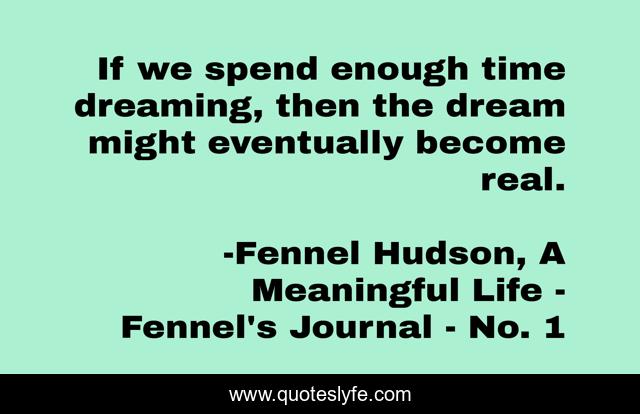 "Fennel Hudson, A Meaningful Life - Fennel's Journal - No. 1 Quotes." Quoteslyfe.com, 2025. Sat. 06 Dec. 2025. <https://www.quoteslyfe.com/quote/If-we-spend-enough-time-dreaming-then-208311>.