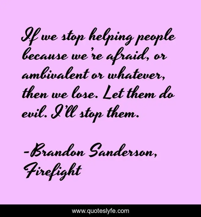 "Brandon Sanderson, Firefight Quotes." Quoteslyfe.com, 2025. Sat. 06 Dec. 2025. <https://www.quoteslyfe.com/quote/If-we-stop-helping-people-because-we-154233>.