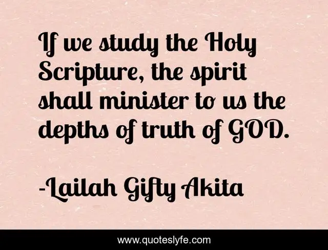 This page presents the quote "If we study the Holy Scripture, the spirit shall minister to us the depths of truth of GOD.". Author of this quote is Lailah Gifty Akita. This quote is about bible-study, holy-scripture, christian, inspiring, god,.