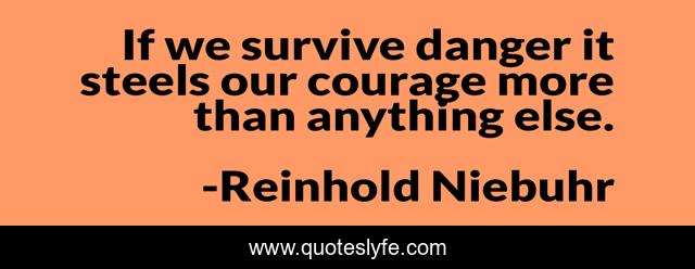 This page presents the quote "If we survive danger it steels our courage more than anything else.". Author of this quote is Reinhold Niebuhr. This quote is about victories, worthy,.