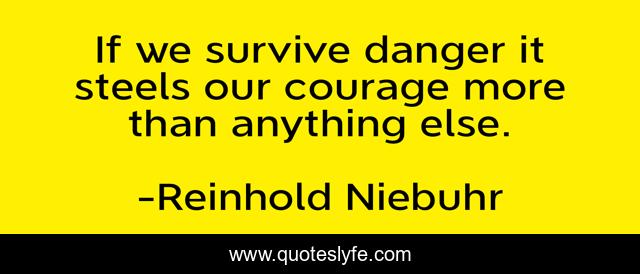 This page presents the quote "If we survive danger it steels our courage more than anything else.". Author of this quote is Reinhold Niebuhr. This quote is about survive, anything, danger,.
