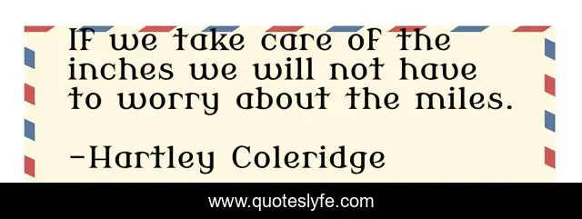 This page presents the quote "If we take care of the inches we will not have to worry about the miles.". Author of this quote is Hartley Coleridge. .