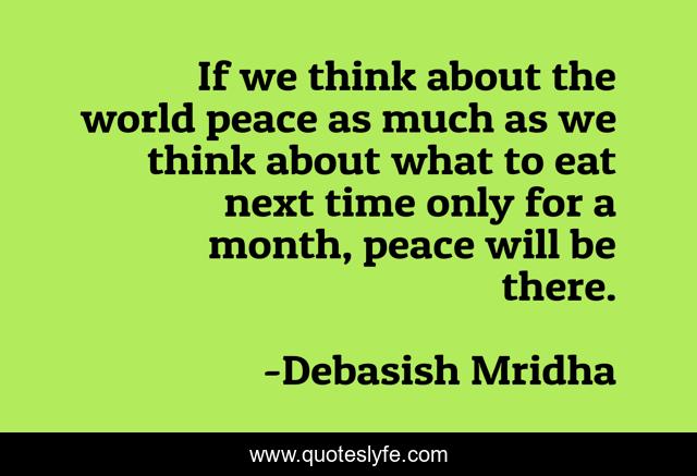 This page presents the quote "If we think about the world peace as much as we think about what to eat next time only for a month, peace will be there.". Author of this quote is Debasish Mridha. This quote is about life, love, knowledge, inspirational, intelligence, philosophy, wisdom, quotes, affection,.