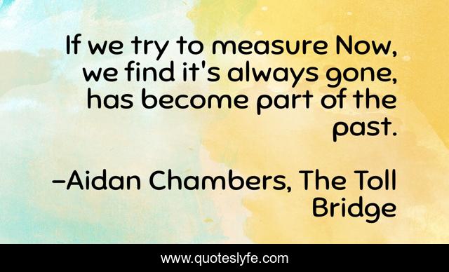 "Aidan Chambers, The Toll Bridge Quotes." Quoteslyfe.com, 2025. Sat. 06 Dec. 2025. <https://www.quoteslyfe.com/quote/If-we-try-to-measure-Now-we-8163>.