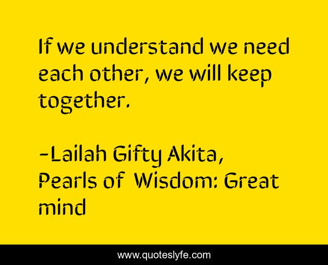 "Lailah Gifty Akita, Pearls of Wisdom: Great mind Quotes." Quoteslyfe.com, 2025. Fri. 05 Dec. 2025. <https://www.quoteslyfe.com/quote/If-we-understand-we-need-each-other-86335>.