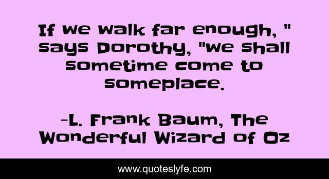 "L. Frank Baum, The Wonderful Wizard of Oz Quotes." Quoteslyfe.com, 2025. Sat. 06 Dec. 2025. <https://www.quoteslyfe.com/quote/If-we-walk-far-enough-says-Dorothy-195458>.