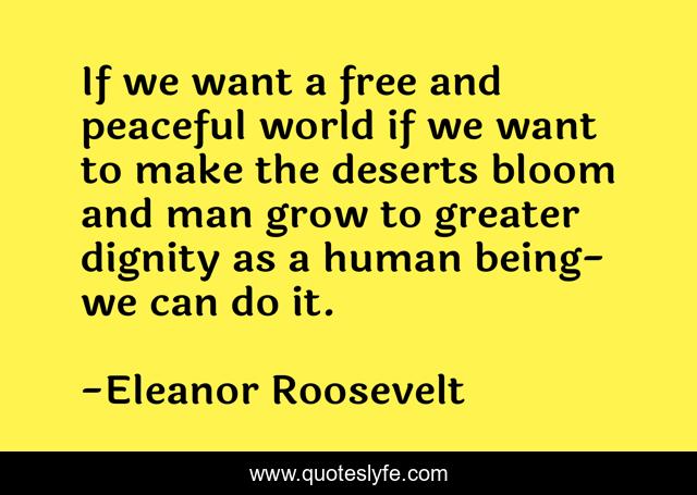 This page presents the quote "If we want a free and peaceful world if we want to make the deserts bloom and man grow to greater dignity as a human being-we can do it.". Author of this quote is Eleanor Roosevelt. .