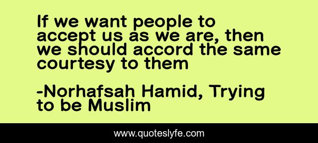 This page presents the quote "If we want people to accept us as we are, then we should accord the same courtesy to them". Author of this quote is Norhafsah Hamid, Trying to be Muslim. This quote is about courtesy, acceptance, people,.
