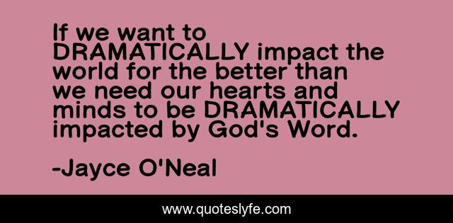 This page presents the quote "If we want to DRAMATICALLY impact the world for the better than we need our hearts and minds to be DRAMATICALLY impacted by God's Word.". Author of this quote is Jayce O'Neal. This quote is about bible, christianity,.