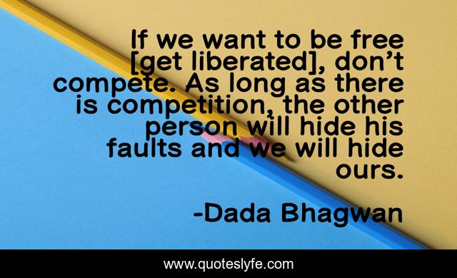 This page presents the quote "If we want to be free [get liberated], don’t compete. As long as there is competition, the other person will hide his faults and we will hide ours.". Author of this quote is Dada Bhagwan. This quote is about liberated, spiritual, competition,.