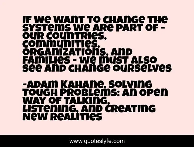 "Adam Kahane, Solving Tough Problems: An Open Way of Talking, Listening, and Creating New Realities Quotes." Quoteslyfe.com, 2025. Fri. 05 Dec. 2025. <https://www.quoteslyfe.com/quote/If-we-want-to-change-the-systems-259007>.