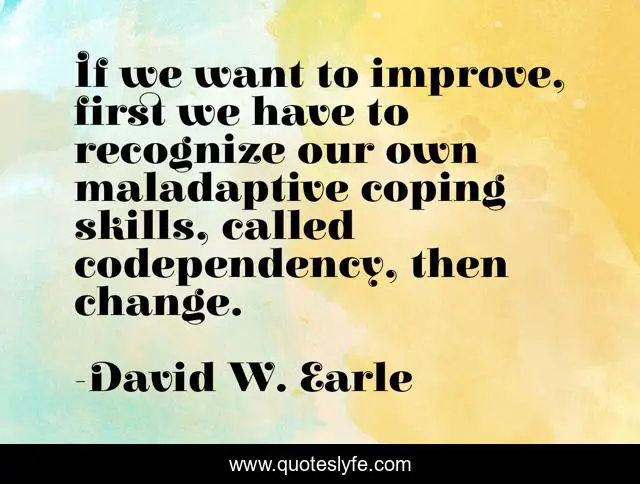 This page presents the quote "If we want to improve, first we have to recognize our own maladaptive coping skills, called codependency, then change.". Author of this quote is David W. Earle. This quote is about relationships, love, family, chaos, dysfunctional-families, change, codependency, co-dependence, dysfunctional,.