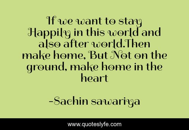 This page presents the quote "If we want to stay Happily in this world and also after world.Then make home, But Not on the ground, make home in the heart". Author of this quote is Sachin sawariya. .