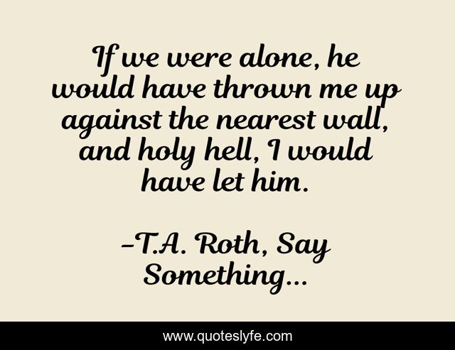 This page presents the quote "If we were alone, he would have thrown me up against the nearest wall, and holy hell, I would have let him.". Author of this quote is T.A. Roth, Say Something.... This quote is about lust, passion,.