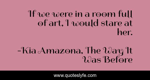 This page presents the quote "If we were in a room full of art, I would stare at her.". Author of this quote is Kia Amazona, The Way It Was Before. This quote is about art, first-love,.