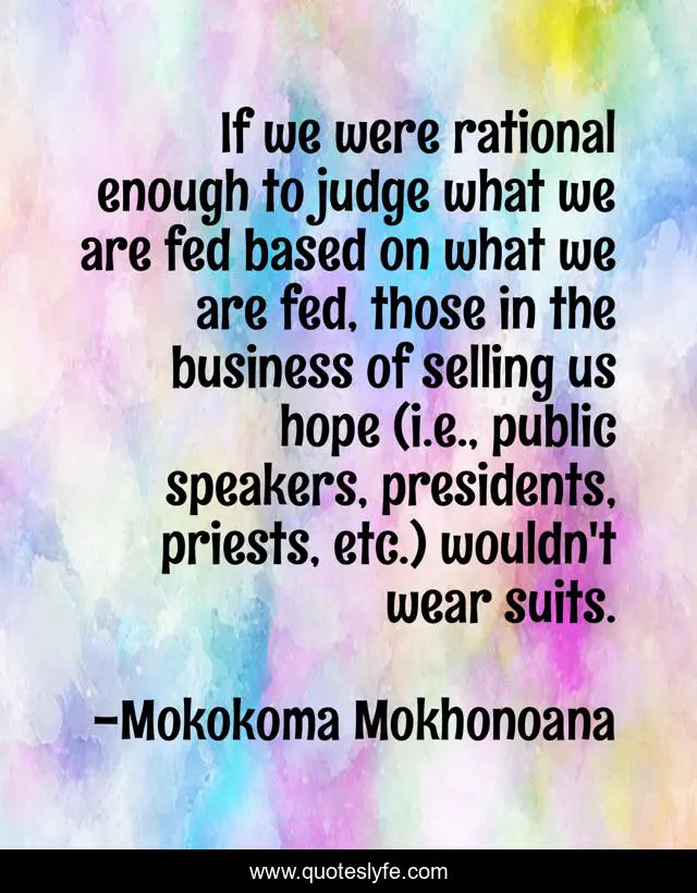 "Mokokoma Mokhonoana Quotes." Quoteslyfe.com, 2025. Fri. 05 Dec. 2025. <https://www.quoteslyfe.com/quote/If-we-were-rational-enough-to-judge-128815>.