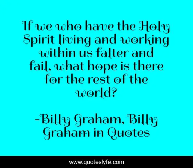 This page presents the quote "If we who have the Holy Spirit living and working within us falter and fail, what hope is there for the rest of the world?". Author of this quote is Billy Graham, Billy Graham in Quotes. This quote is about disappointment, billy-graham,.