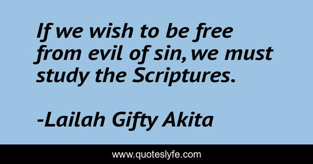 This page presents the quote "If we wish to be free from evil of sin, we must study the Scriptures.". Author of this quote is Lailah Gifty Akita. This quote is about bible-study, singing, sin, evil,.