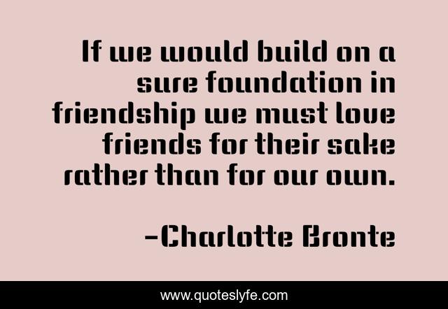 This page presents the quote "If we would build on a sure foundation in friendship we must love friends for their sake rather than for our own.". Author of this quote is Charlotte Bronte. .