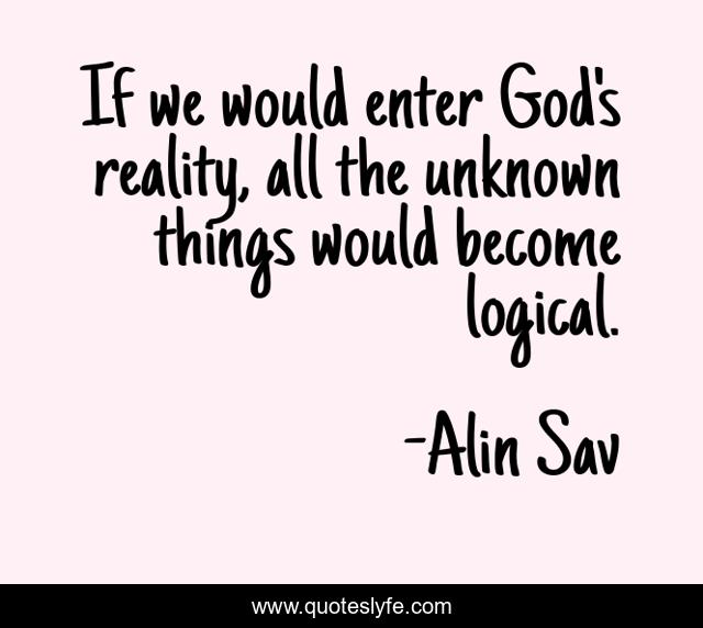 This page presents the quote "If we would enter God's reality, all the unknown things would become logical.". Author of this quote is Alin Sav. This quote is about enthusiasm, spiritual, inspirational,.