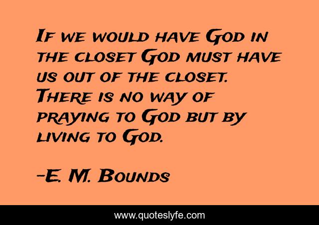 This page presents the quote "If we would have God in the closet God must have us out of the closet. There is no way of praying to God but by living to God.". Author of this quote is E. M. Bounds. .