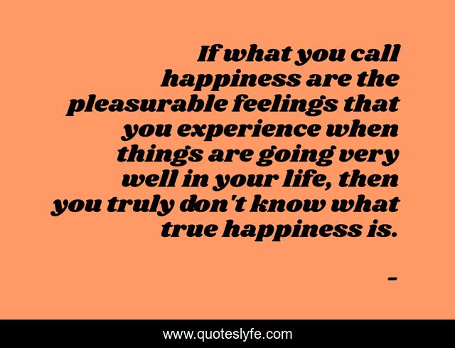 This page presents the quote "If what you call happiness are the pleasurable feelings that you experience when things are going very well in your life, then you truly don't know what true happiness is.". Author of this quote is . This quote is about pleasurable-feelings, edmond-mbiaka, true-happiness, what-is-true-happiness, understanding-happiness, positive-experiences, happiness,.