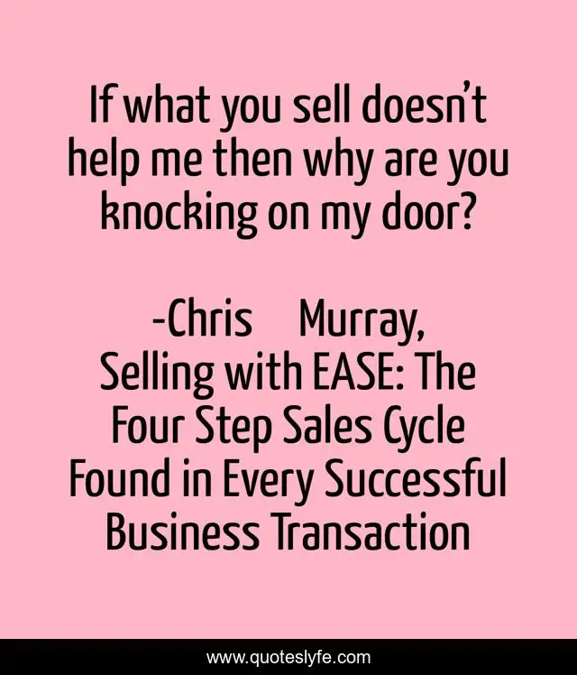 This page presents the quote "If what you sell doesn’t help me then why are you knocking on my door?". Author of this quote is Chris Murray, Selling with EASE: The Four Step Sales Cycle Found in Every Successful Business Transaction. This quote is about negotiation, sales-effectiveness, business-advice, sales-training, money, influence, sales, trust, selling-skills,.