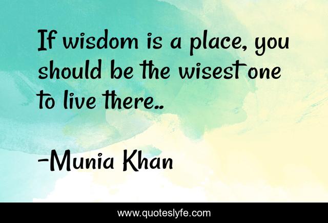 This page presents the quote "If wisdom is a place, you should be the wisest one to live there..". Author of this quote is Munia Khan. This quote is about place, live, wisest, wise, wisdom,.