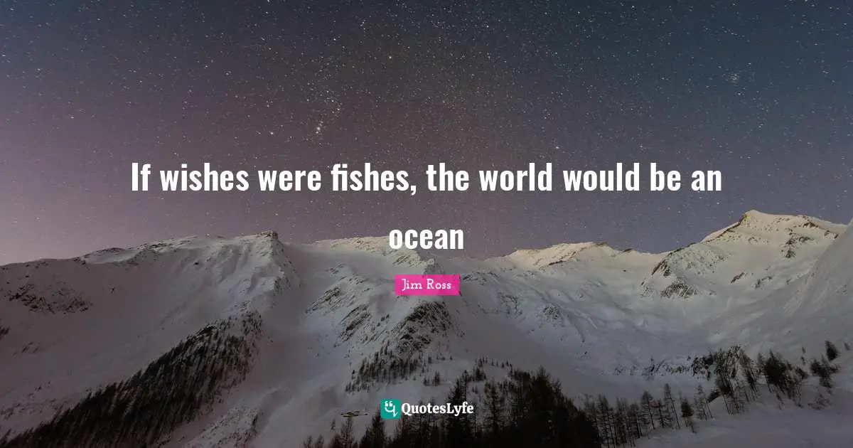 This page presents the quote "If wishes were fishes, the world would be an ocean". Author of this quote is Jim Ross. This quote is about ocean, wish, fishes, would be, world,.