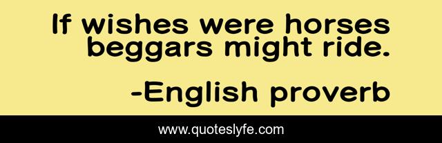 This page presents the quote "If wishes were horses beggars might ride.". Author of this quote is English proverb. .