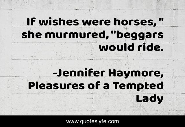 "Jennifer Haymore, Pleasures of a Tempted Lady Quotes." Quoteslyfe.com, 2025. Mon. 08 Dec. 2025. <https://www.quoteslyfe.com/quote/If-wishes-were-horses-she-murmured-beggars-258634>.